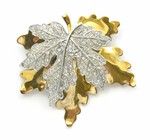 A rarely found design, this brooch depicts a sleek golden leaf with