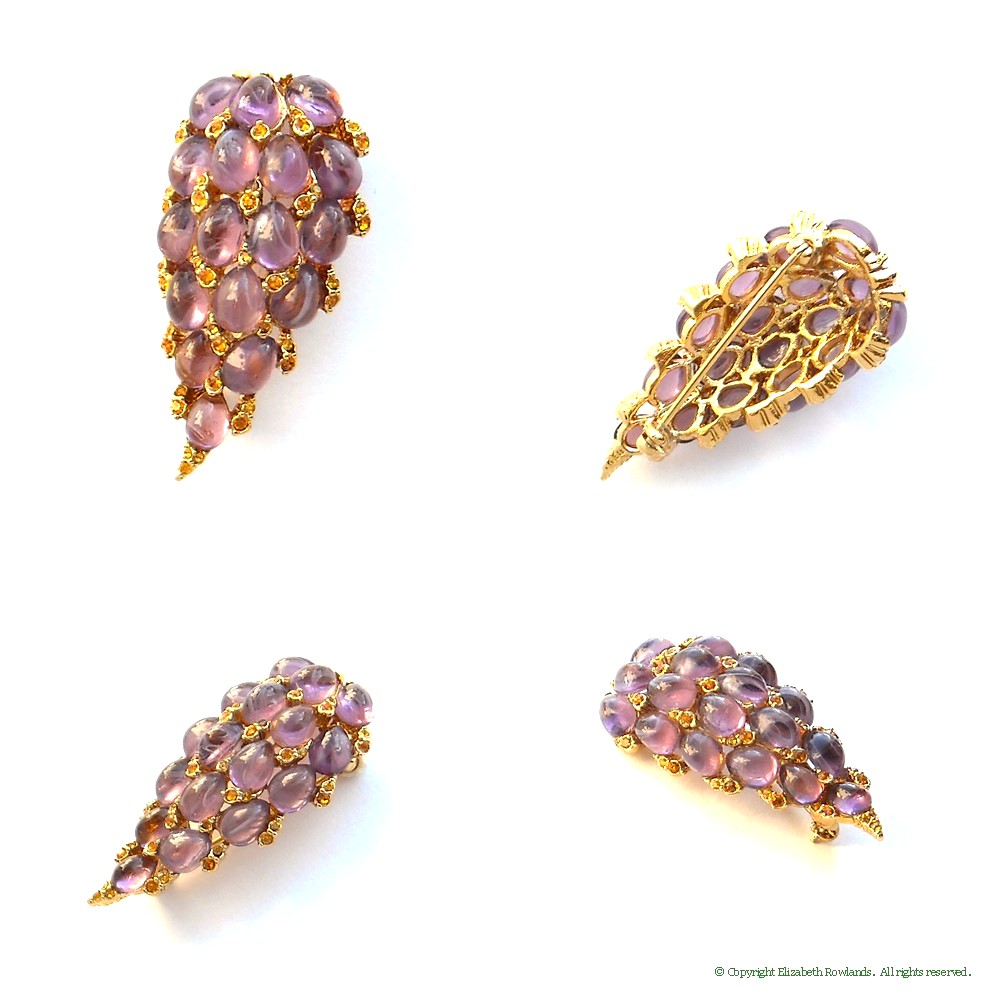 brooch is a realistic bunch of grapes on the vine, ca. 1942, and is the