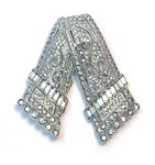 Art Deco influence with the square center row of rhinestones in an