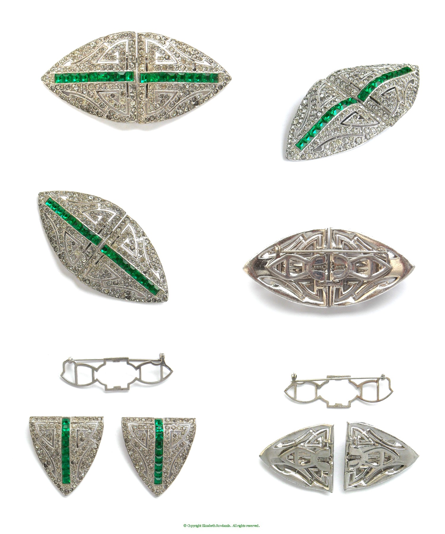 central floral cluster with it's emerald and peridot rhinestones.