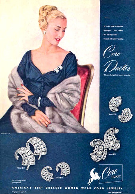 array of other sparkling jewels. Marked: Coro (w/ Pegasus), Des. Pat. Pend. |
